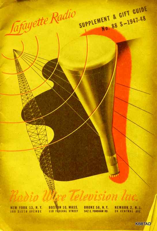 The New York-area based Lafayette Radio apparently split off from its Chicago and Atlanta partners during World War II. The Atlanta-Chicago part of the organization had the name Lafayette Radio Corporation while the New York area (including Boston) kept the Radio Wire Television name. There were two distinct catalogs in 1942, both number 87, one from Radio Wire Television Inc. naming New York, Bronx, Newark and Boston as locations. The other 1942 catalog lists Lafayette Radio Corporation and only the addresses in Chicago and Atlanta. Things apparently came to a head in 1945 when the Chicago and Atlanta side of the organization announced they would no longer be named Lafayette Radio Corporation but would be changing their name to Concord Radio Corporation. Separate catalogs would continue from both until 1948 when the two sides produced a combined catalog under the name "Lafayette-Concord" billing itself as the "world's largest radio supply organization". That continued for a couple of years.