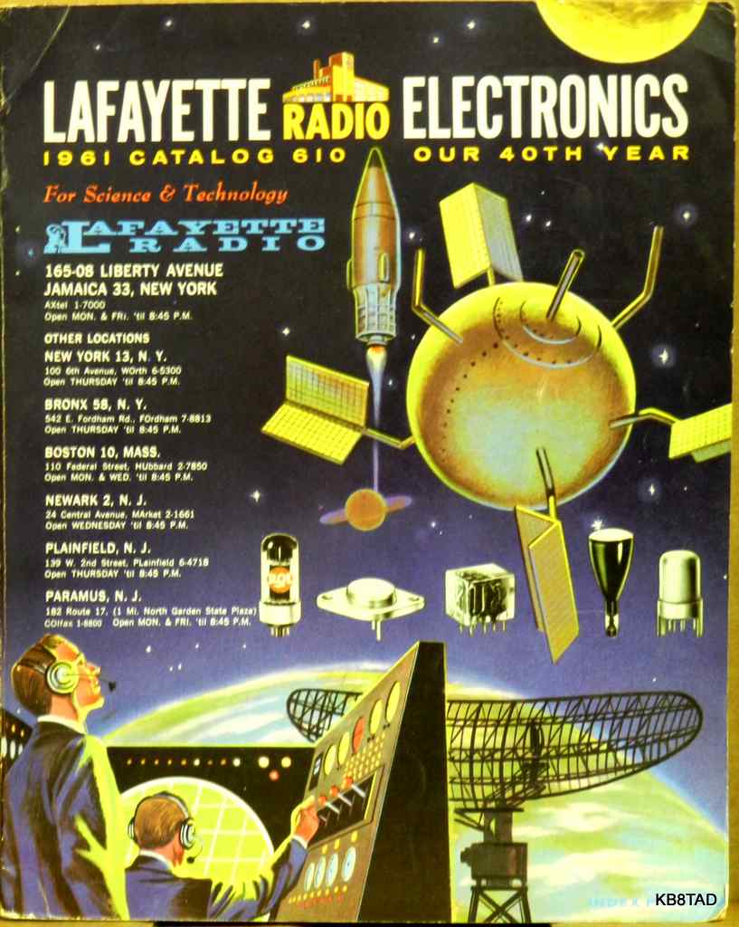 I personally became acquainted with Lafayette in the late 1950s. The 1959, 60 and 61 catalogs, typical of their catalogs of that era, had attractive futuristic space-age cover art. It was a true dream book for a school kid with an interest in electronics. I pored over the pages.