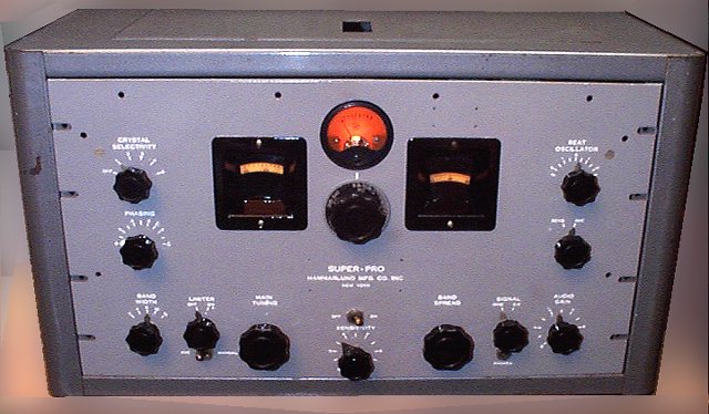 The Super-Pro series 200 is probably Hammarlund's finest prewar receiver. A full page ad introducing the SP-200 can be found in the October 1939 issue of QST magazine, page 73. (Was the choice of page 73 random? :-) An article on the new receiver appears in the November 1939 Radio News. The SP-200 sports 16 tubes on its chassis plus 2 in the separate power supply. Full page ads appeared in QST about once a month for an entire year. According to the November 1940 QST ad, "The fact that 'Super-Pro' receivers are used extensively by the U.S. Signal Corps and many other governmental departments, speaks for itself. Use the set the experts use." Newark Electric advertised the set for $279 in its Christmas 1940 ad, twice the price of the HQ-120X.